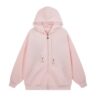 Pink Zip-Up Hoodie with Lace and Bow Detail